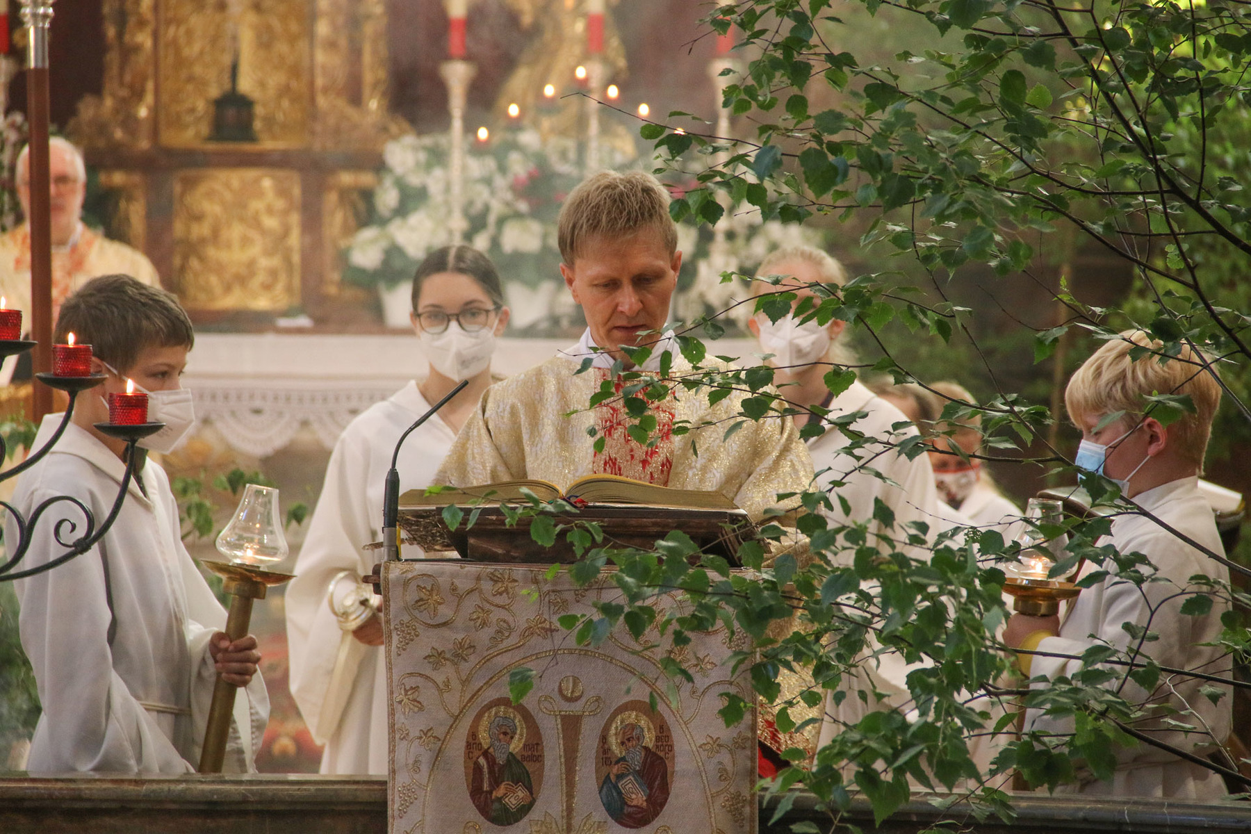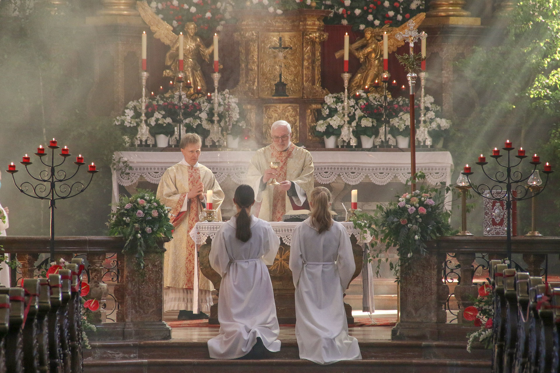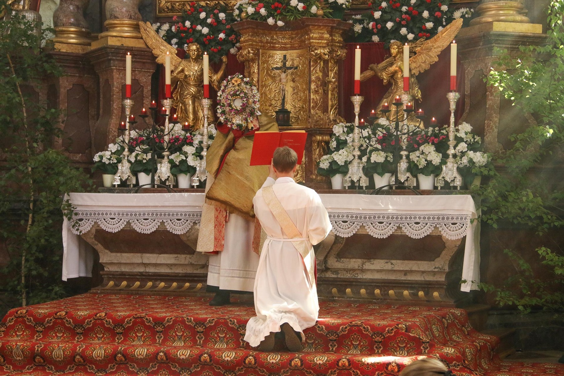 Das Hochfest des Leibes und Blutes Christi feierte mit der Pfarrgemeinde Stiftsdechant H. Klemens und Diakon H. Andreas.