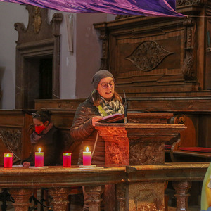 Bei den 14 Stationen wurde Jesus auf seinem leidvollen Weg in den Tod betend von den Gottesdienstbesucher*innen begleitet und die Karfreitagssituationen des eigenen Lebens und der heutigen Welt in den Blick genommen.