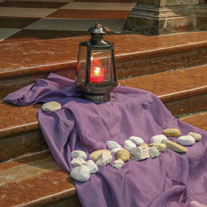 Am Freitag vor dem Palmsonntag gestalteten die Pastoralassistentinnen im Dekanat Reichersberg Patrizia Wohlmacher und Maria Magdalena Frauscher gemeinsam einen Kreuzweg in der Stiftskirche Reichersberg, da es wettermäßig im Herrengarten leider nicht möglich war.