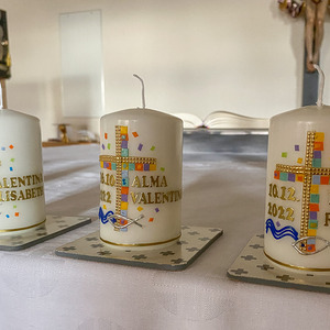 Als Zeichen der Verbundenheit mit Christus, dem Licht der Welt, wurden die Kinder gesegnet und eine von Elisabeth Fischer gestaltete Kerze mit Taufdatum überreicht.