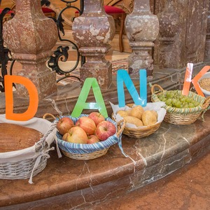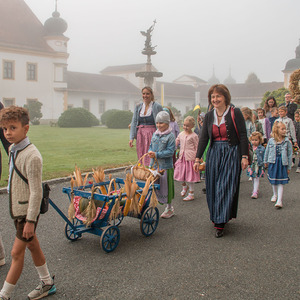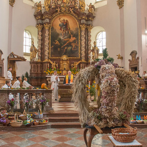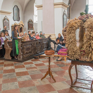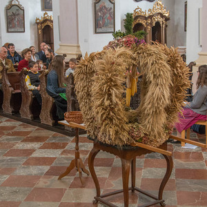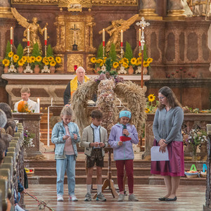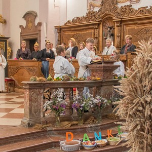 Diakon H. Andreas segnete die Erntegaben und H. Bernhard feierte in der Stiftskirche die Eucharistie (= Danksagung) wo alles noch einmal bekräftigt wurde.