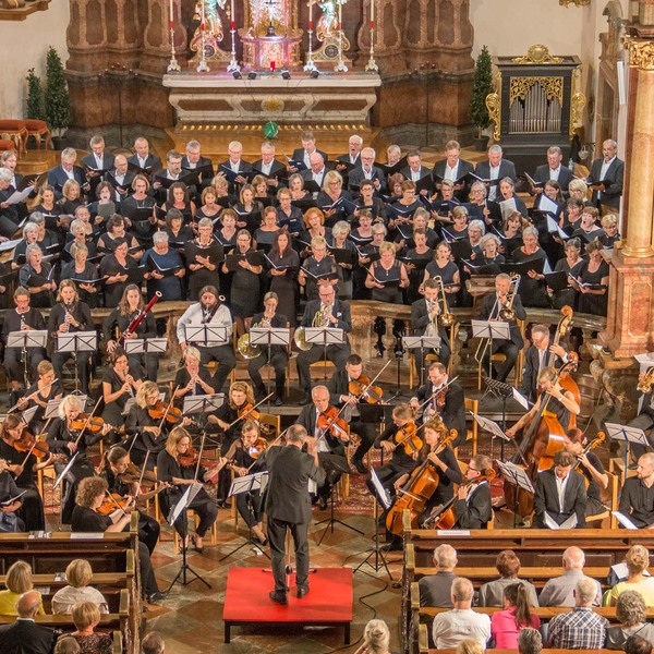 Gesungen wurde die Messe von knapp 100 Sänger:innen aus den pfarrlichen Chören des Dekanats Reichersberg, die sich dafür zu einem gemeinsamen Projektchor zusammengefunden haben, und vier Solisten:innen (Julia Dirisamer, Heide-Maria Reisegger, Raphael Trimmel und Jakob Puchmayr).