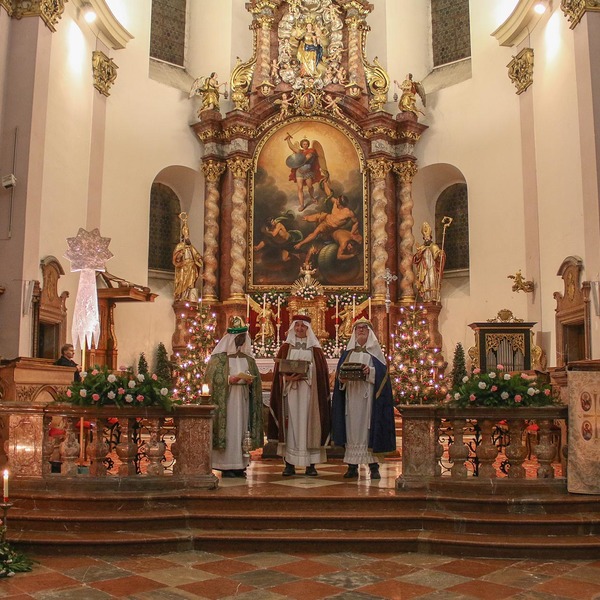 Höhepunkte waren der Einzug der Heiligen Drei Könige und am Schluss das miteinander gesungene Stille Nacht in der wunderschönen weihnachtlich geschmückten Stiftskirche.