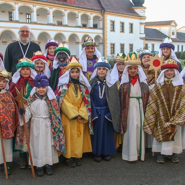 Traditionell erwarten bereits in der Früh die Chorherren die Mädchen und Burschen der Dreikönigsaktion, die von dort ihren Ausgangspunkt nehmen, um den Segen in die Häuser des Ortes zu tragen. Dabei wird heuer für Projekte in Kenia gesammelt. Nachdem gemeinsam das Kind in der Krippe besungen wurde segnete und entsendete Propst Markus die Sternsinger-Gruppen und dankte den Kindern sowie den Begleitenden für ihr Engagement.