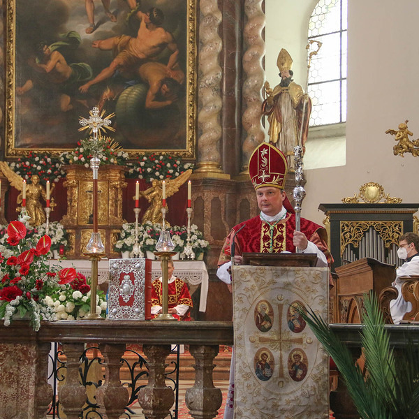 Als "Geburtstag der Kirche" bezeichnete Propst Markus das Pfingstfest und erinnerte an die Auskunftsfähigkeit und die eigenen Glaubenswurzeln: "Es ist wichtig, sich seiner Wurzeln, des Anfangs zu erinnern." Gleichzeitig betonte der Propst die beiden Säulen der Kirche: die Hl. Schrift und die Tradition. "Verglichen mit dem Geburtstag eines Menschen gehören eben Anfang, also Geburt und Lebensjahre mit ihren Erfahrungen (Tradition) zusammen."