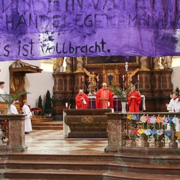 Reichersberger Kindergartenkinder bringen Jesus Blumen / 12.04.2019 zu den Bildern: Reichersberger Kindergartenkinder bringen Jesus Blumen / 12.04.2019