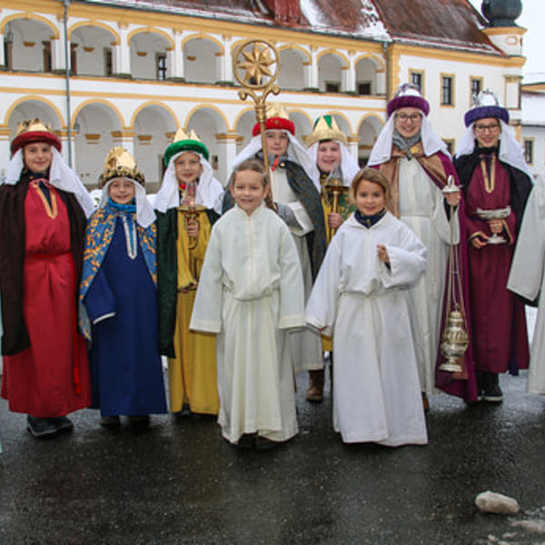 Unsere Sternsinger besuchten gleich am Morgen die Chorherren im Stift. Die Wanderung der beiden Sternsinger-Gruppen durch die Pfarre Reichersberg beschäftigt die jungen Teilnehmer in ihrer Ferienzeit für zwei Tage. Sie bitten um ein offenes Herz für Sozialprojekte und Kinder in aller Welt.