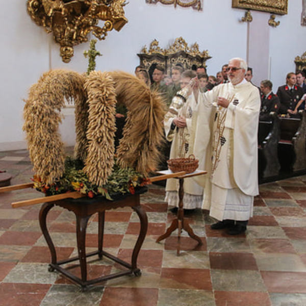 An diesem wunderschönen Tag im Spätsommer zogen Klein und Groß in feierlicher Prozession angeführt vom MV Antiesenhofen-Reichersberg von der Wirtskapelle zur Stiftskirche. Diesem Zug schlossen sich der Kindergarten, die Volksschule, die freiwillige Feuerwehr, die Goldhaubengruppe, die Liedertafel, die Ministranten mit dem Klerus und die Pfarrbevölkerung an.