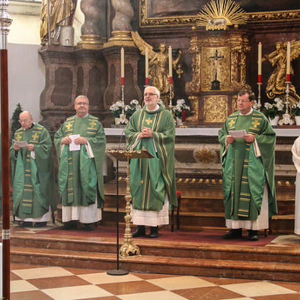 Propst Markus Grasl, Stiftsdechant Klemens Pillhofer, Altpropst Eberhard Vollnhofer, H. Stefan Mitterhauser, Dr. Roman Gawlik und der Religionsinspektor Pater Stefan Leidenmüller zelebrierten die Hl. Messe. Die Freude war bei allen spürbar und ansteckend!