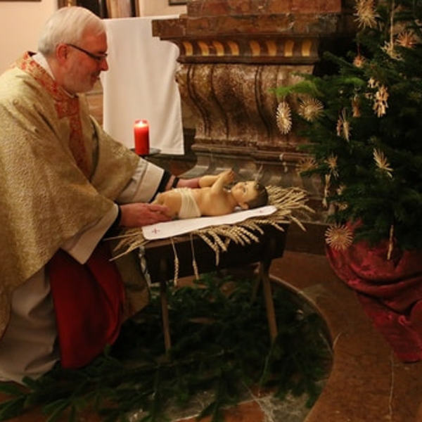 Nach dem das Jesuskind in die Krippe gelegt wurde, feierte ein große Festgemeinde zusammen mit dem Kirchenchor die Liturgie der heiligen Nacht - die Christmette.