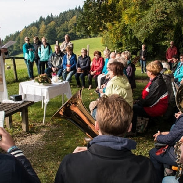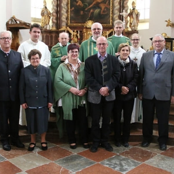 Propst Markus begrüßte den Bezirksjägermeister Rudolf Wagner, ebenso Mitfeiernde aus dem benachbarten Bayern. Die Jagdhornbläsergruppe "Innkreis" spielte den Gottesdienst unter der Leitung von Hornmeister Ludwig Ortmaier. Propst Markus dankte L. Ortmaier für 35 Jahre Bezirksjägermesse und überreichte Stiftswein aus den eigenen Rieden.