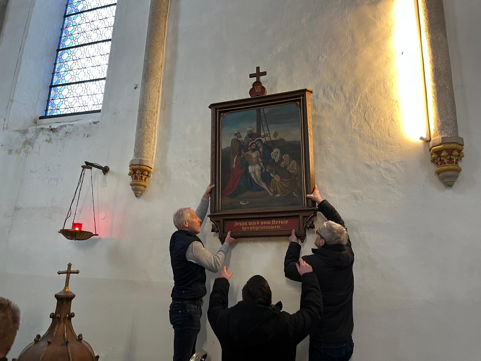 In diesen Tagen wurden die vorbereitenden Arbeiten für die anstehende Renovierung unserer Pfarrkirche fortgesetzt. Ein weiterer sichtbarer Schritt ist das Abhängen der Kreuzwegbilder, dass am 15. Februar nach dem Familiengottesdienst durchgeführt wurde.