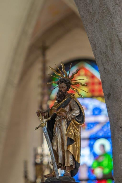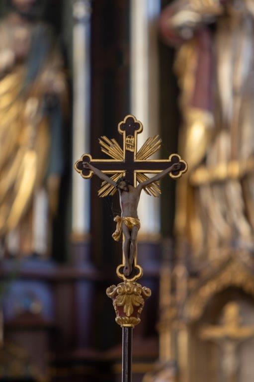 Die Kirche verströmt eine ruhige feierliche Atmosphäre, die Besucher aus dem Alltag heraushebt und sie zum Innehalten und zu kurzer Andacht einlädt.