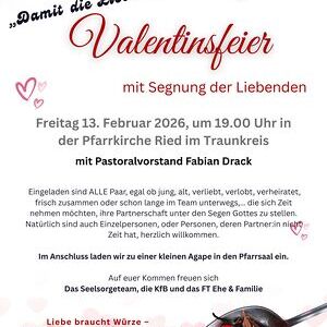 „Damit die Liebe schmackhaft bleibt.“ – unter diesem stimmungsvollen Motto stand die Valentinsfeier mit Segnung der Liebenden am Freitag, 13. Februar 2026, in der Pfarrkirche Ried im Traunkreis.