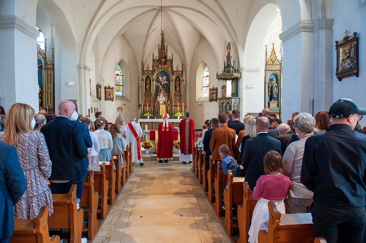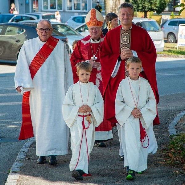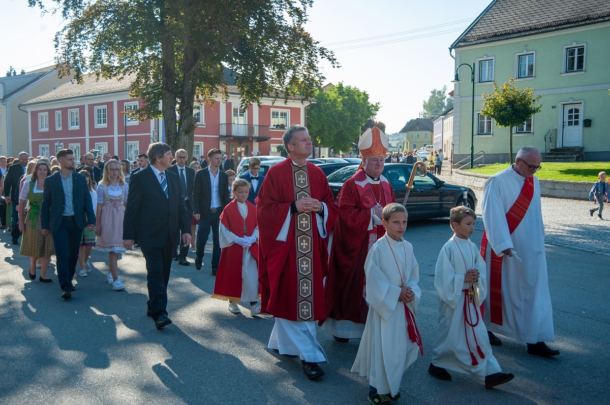 Am Samstag, 25. September durften wir Bischof Manfred Scheuer als Firmspender in unserer Pfarre begrüßen. Bei sonnigem Spätsommerwetter begleitete der Musikverein den Festzug zur Kirche, wo unser Kirchenchor für die feierliche musikalische Gestaltung der Festmesse sorgte. Anschließend stand unser Bischof noch für ein Gruppenfoto und Einzelfotos zur Verfügung.