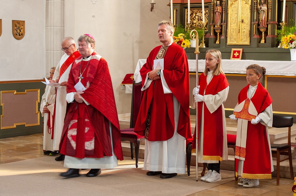 Am Samstag, 25. September durften wir Bischof Manfred Scheuer als Firmspender in unserer Pfarre begrüßen. Bei sonnigem Spätsommerwetter begleitete der Musikverein den Festzug zur Kirche, wo unser Kirchenchor für die feierliche musikalische Gestaltung der Festmesse sorgte. Anschließend stand unser Bischof noch für ein Gruppenfoto und Einzelfotos zur Verfügung.