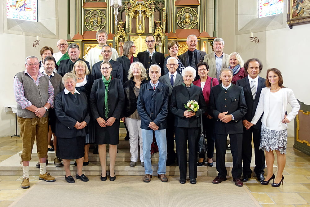 Heuer waren 14 Ehepaare die vor 25 – 40 – 50 – 60 und 65 Jahren das Sakrament der Ehe empfangen haben. In einem sehr schönen Gottesdienst der von Manuela Strasser mit ihrem CHOR musikalisch gestaltet wurde, durften unser Herr Pfarrer Karl Mittendorfer und unser Diakon Dr. Reinhart Daghofer die Paare segnen.