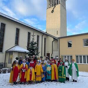 Die Könige brachten den Segen Gottes für das neue Jahr mit dem Wunsch „Gott segne dieses Haus“ zu den Bewohnern am Riedberg.