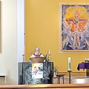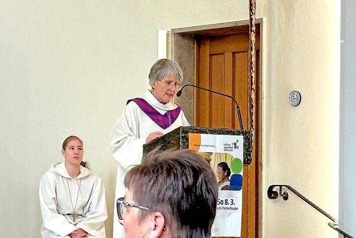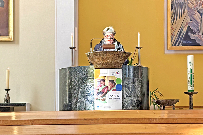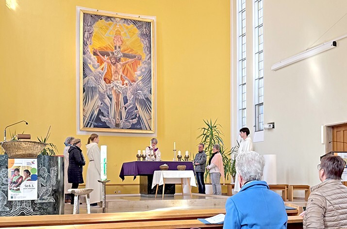 Frau Dr. Elisabeth Reiter gestaltete die Wort-Gottes-Feier mit den Lektorinnen Rosa Hasibeder und Petra Starkmann – unterstützt durch die Ministranten Jakob Wimplinger und Marie Kettl – am Sonntag, 8. März.