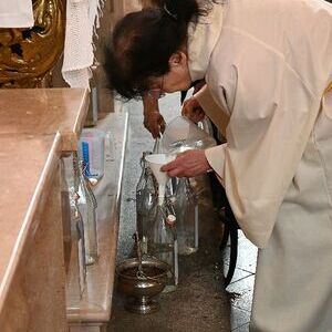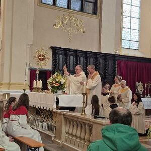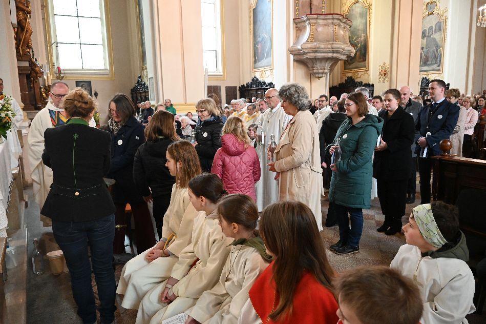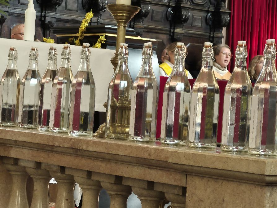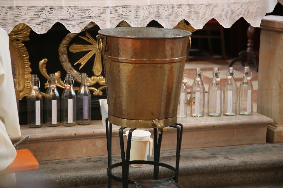 In einem symbolischen Akt ergoss sich Wasser in einen großen Weihwasserkessel. Als Zeichen der Verbundenheit und Zusammengehörigkeit wurde nach dem feierlichen Gottesdienst eine Flasche neu gemischten Weihwassers mit nach Hause in die eigene Pfarrgemeinde gebracht.