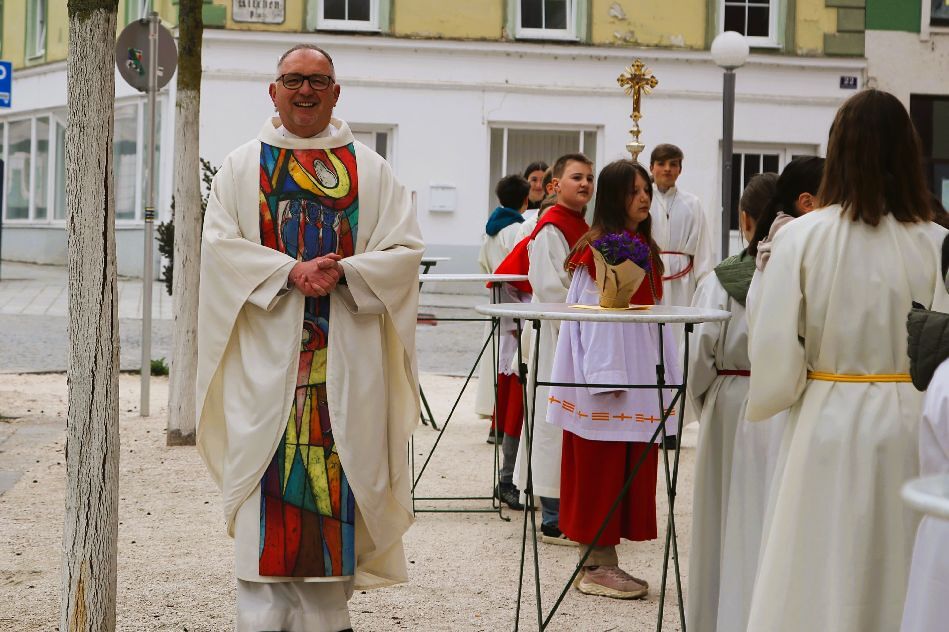 Auch Gläubige aus der Pfarrgemeinde Riedberg pilgerten in einer Sternwallfahrt am Sonntag, den 12. April 2026 zur Pfarrkirche der neu gegründeten Pfarre "Ried im Innkreis".