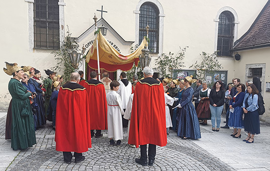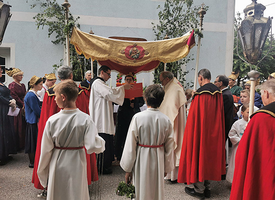 Nach dem Schlusssegen zog die Geistlichkeit samt Monstranz unter dem Himmel in Stille wieder zur Kirche.