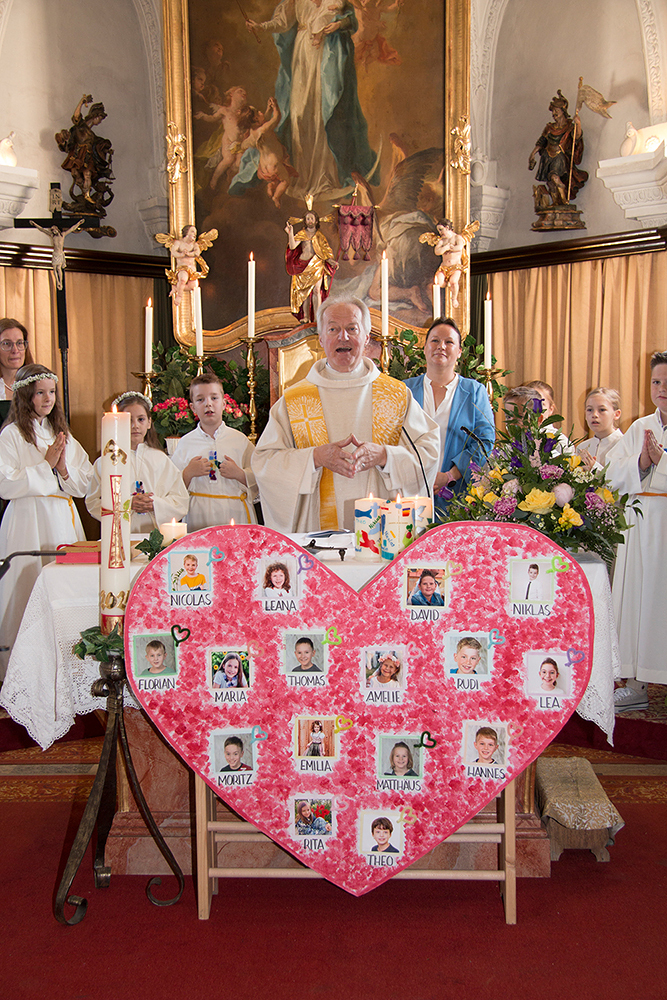 Fotografin Andrea Fasching hielt die besonderen Momente fest. Nach der Messe waren alle zu einer Agape am Gemeindeplatz eingeladen, um die Erstkommunionsfeier gemeinsam gemütlich ausklingen zu lassen.