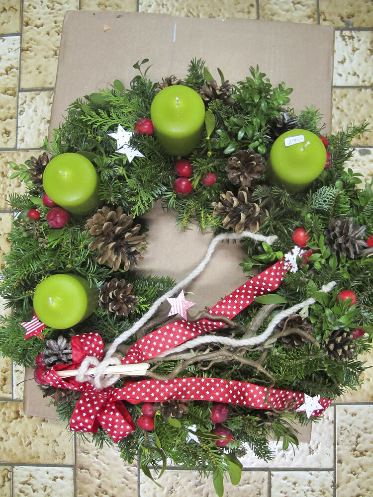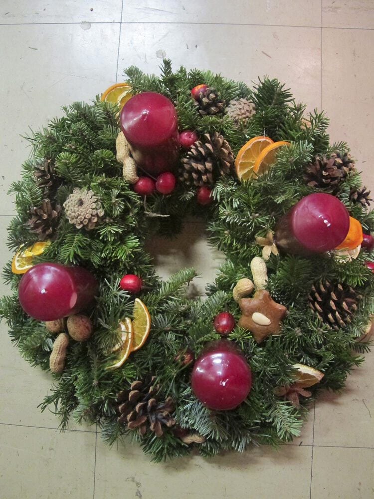 Taditionell hat die KFB wieder viele Adventkränze gebunden. Heuer waren es an die 200. Viele fleißige Hände, große und auch ein paar kleine, haben zusammengeholfen und wahre Kunstwerke entstehen lassen.