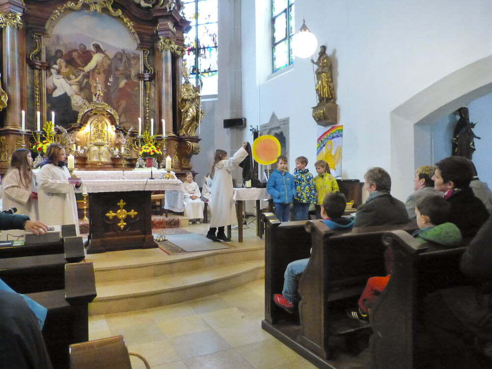 Da die Kinder zumeist die Osternacht nicht mitfeiern, wird seit einigen Jahren am Karsamstag um 16.00 Uhr eine Auferstehungsfeier für Kinder vom Kinderliturgiekreis gestaltet. Diese Feier stand unter dem Thema „Jesus macht unser Leben hell wie eine Sonne“. Unter Miteinbeziehung der Kinder wurde an die Kartage erinnert und der Wandel vom Tod zur Auferstehung spürbar gemacht.