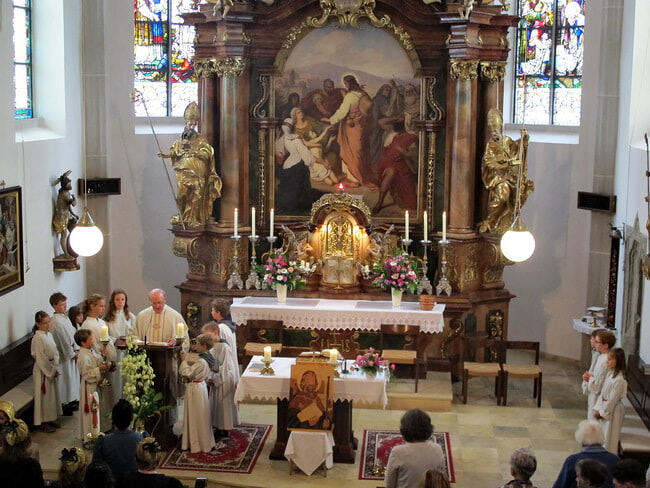 Festzug vom Pfarrheim zur Kirche - Festgottesdienst - Familienfrühschoppen gemeinsam mit Musikverein