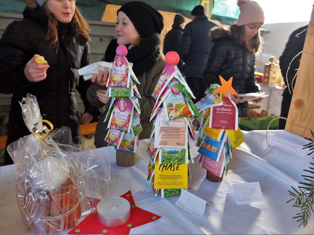 Wir freuen uns über die zahlreichen Besucher bei uns am Christkindlmarkt. Viele ließen sich die leckeren Ringelpommes und Pofesen schmecken. Am Stand der Jungscharkinder gab es allerlei Selbstgebasteltes zu kaufen. Am Sonntag konnte man köstliche Mehlspeisen, Kaffee und Tee beim Pfarrkaffee der KFB und Goldhaubengruppe genießen. Der Schülerchor der VS stimmte uns mit weihnachtlichen Liedern auf die bevorstehenden Festtage ein. Ein Dank an das Gasthaus Forstinger, Muki, für die zur Verfügungstellung des Saals.