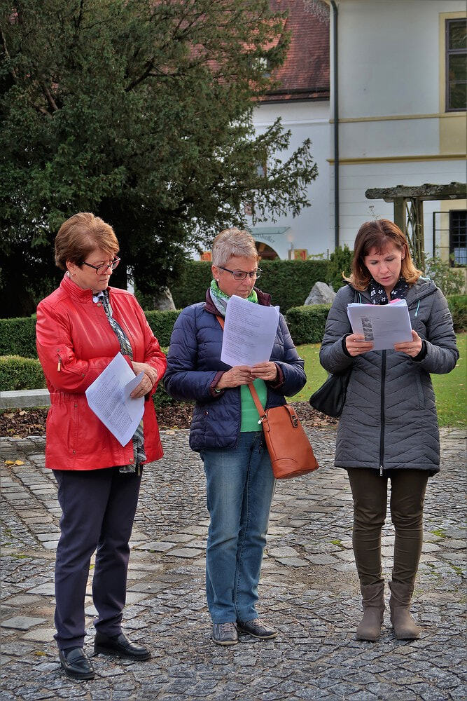 Auf der Heimfahrt hielten wir unsere nachmittägliche Andacht im Garten der Kartause Gamming.