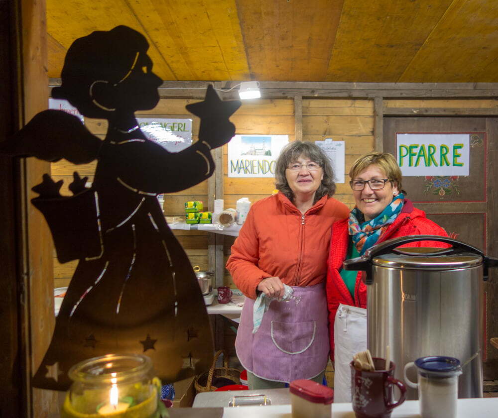Beim Stand der Pfarrgemeinde gab es dieses Jahr ein heißes „DOMENGERL“. Den Erlös vom Verkauf dieses Getränkes spendet die Pfarre für den Mariendom in Linz.