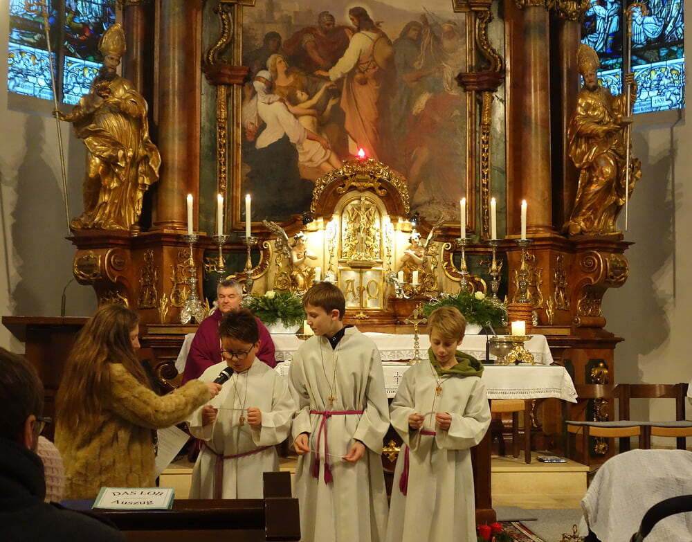 Viele Jungscharkinder waren gekommen, um bei der Messe mitzufeiern und übernahmen gerne das Anzünden der ersten Kerze an den Adventkränzen.