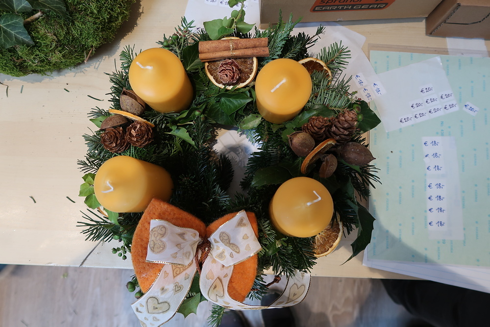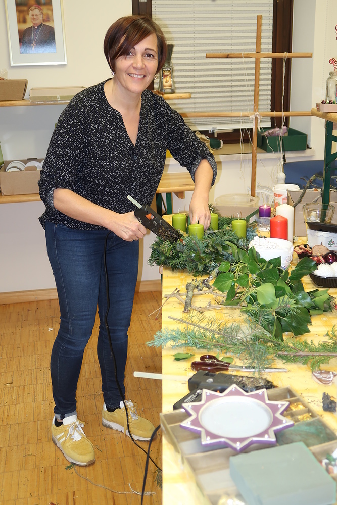 Die Frauen der KFB haben auch heuer wieder fleißig Adventskränze und Türzöpfe gebunden.