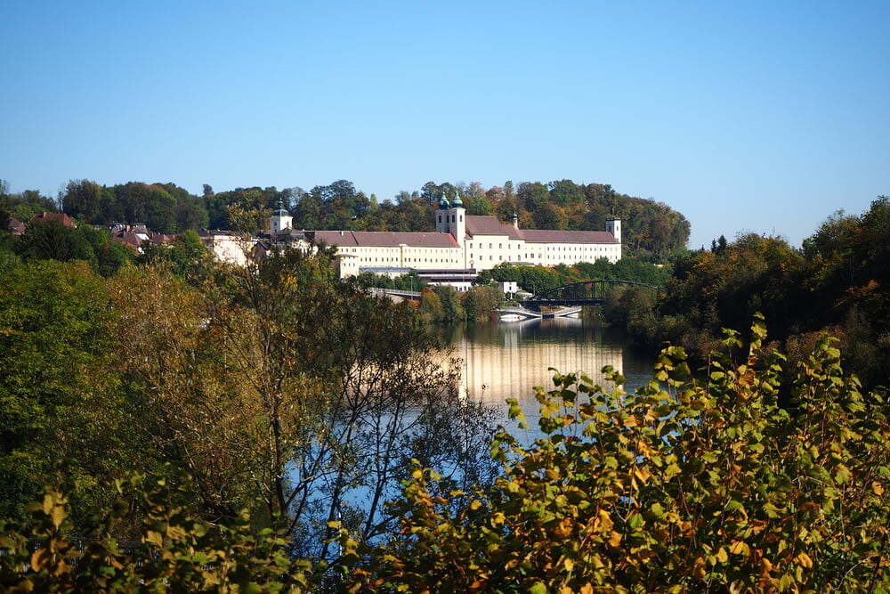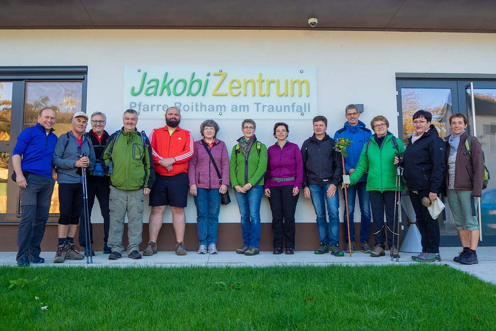 Mit dem bunt geschmückten Pilgerstab ging es vom JakobiZentrum (Pilgersegen in der Pfarrkirche) in Richtung Traunfall (Nikolauskapelle) und „drenta da Traun“ dann auf dem schönen Traunreiterweg (Europa-Schutz-Gebiet, Natura 2000) bis nach Stadl-Paura.