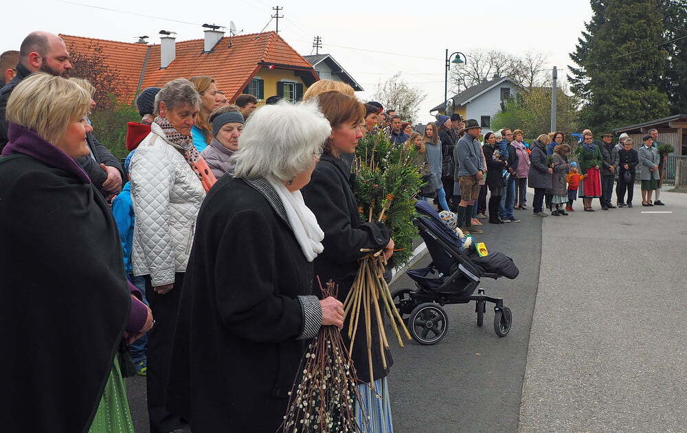 Die Palmweihe bei der Schöberlkapelle wurde von den Kindergartenkindern mit einem Lied und von einer Bläsergruppe des MV Roitham musikalisch umrahmt.
