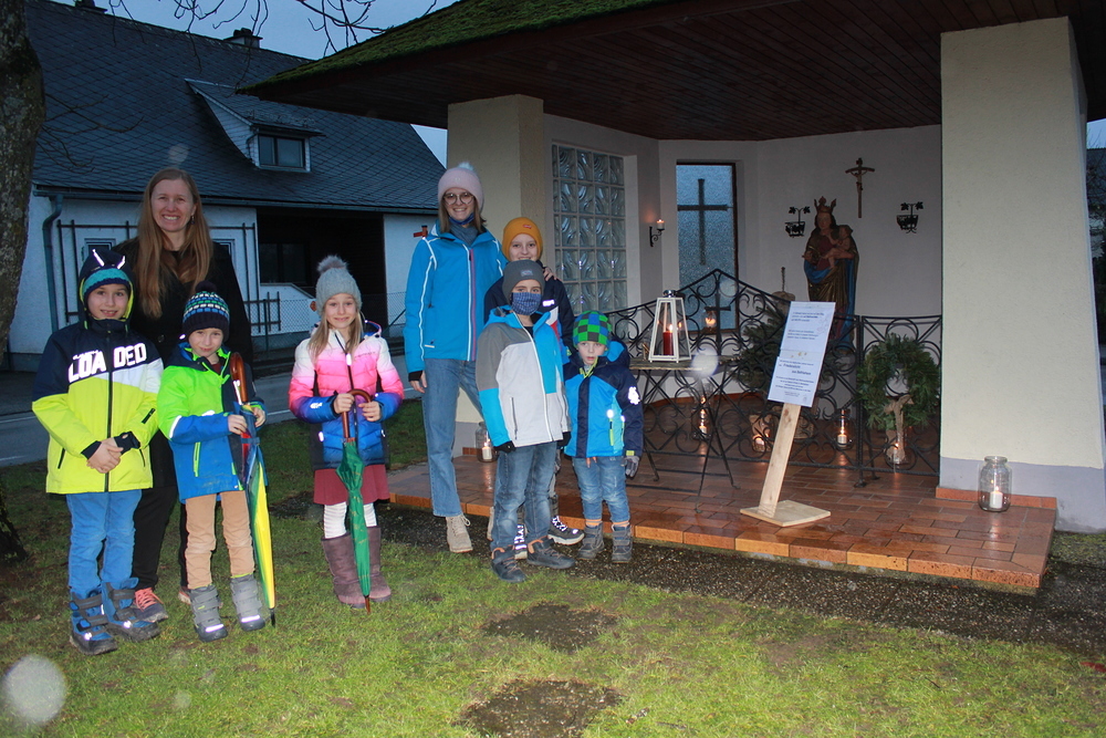 Das Friedenslicht begleitete sie bei den einzelnen Stationen bis zur Kirche. Dort konnten die Kinder einen selbstgebastelten Stern als Geschenk für das Jesuskind bei der Krippe ablegen. Es wurden Weihnachtslieder gesungen und ein „ Segen to go“ Kärtchen für jede Familie zu mitnehmen angeboten.