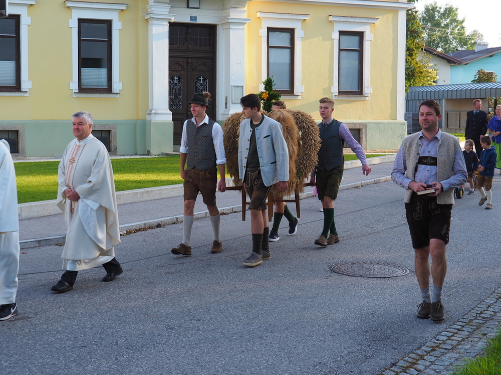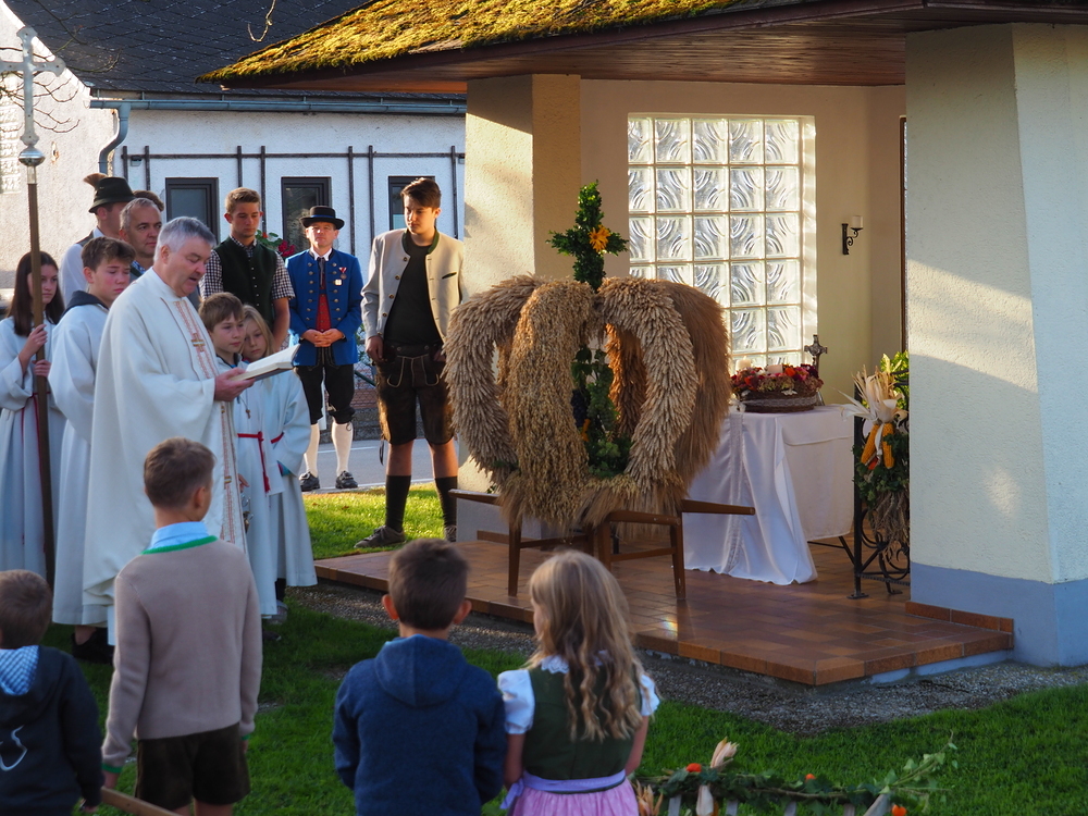 Nach seiner Begrüßung bei der Schöberlkapelle wurden die Erntekrone und die Erntegaben gesegnet.
