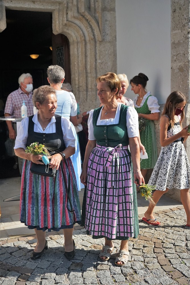 Im Anschluss an den Gottesdienst verteilten die Goldhaubenfrauen wieder zahlreiche, liebevoll gebundene Kräutersträußerl an die Gottesdienstbesucher. Die geweihten Sträußerl bringen Gottes reichen Segen in die Häuser.