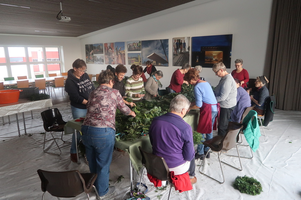 Das traditionelle Adventkranzbinden der kfb Roitham fand auch heuer wieder dank der Hilfe vieler fleißiger Hände statt. Der große Adventkranz, der die Kirche schmückt, wurde ebenfalls hier gebunden und geschmückt. Es wurden ca. 100 Stk. Kränze, Türzöpfe und Gestecke gefertigt.