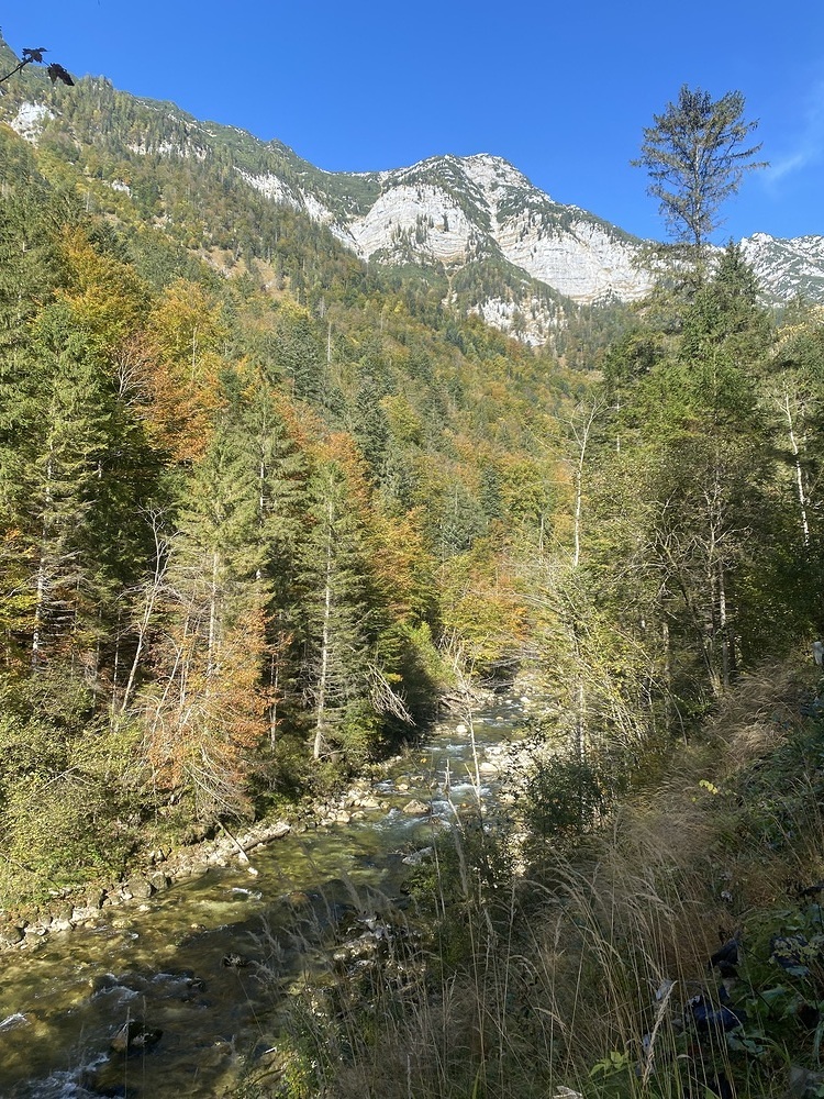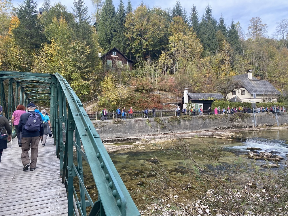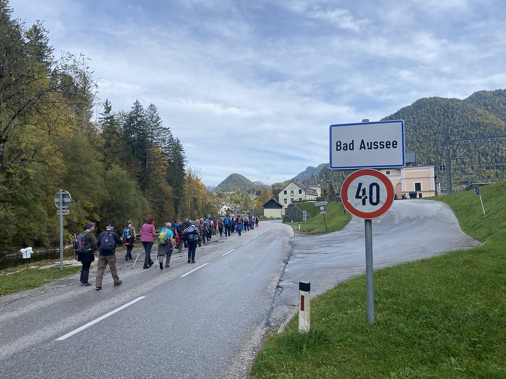 Bei herrlichem Herbstwetter machten sich etwa 80 Frauen und Männer auf den Weg, um von Obertraun - entlang der Traun - nach Bad Aussee zu pilgern, wo sich im Kurpark die Altausseer-Traun und die Grundlsee-Traun treffen und in der Koppentraun weiterfließen. Aus Roitham sind 13 Personen mit dem Zug (ab Gmunden mit Einfach-Raus-Ticket) angereist, wo wir auf Pater Johannes trafen, der ebenfalls teilgenommen hat. Das gemeinsame Gehen – mit dem Pilgerstab voran – bewegt sowohl den Körper, als auch den Geist.