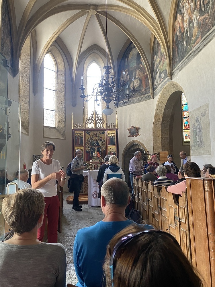 Das kirchliche Projekt „Wasserpilgern“ wurde und wird von Teresa Kaineder (Diözese Linz) für „salzkammergut 2024“ geleitet und organisiert. In 5 einzelnen Tagesetappen wurde die Strecke von Lambach bis Bad Aussee (im Zeitraum von 1 ½ Jahren) entlang der Traun „begangen“, um schon im Vorfeld der Europäischen Kulturhauptstadt mit Menschen aus den teilnehmenden Pfarren ins Gespräch zu kommen und den Weg kennenzulernen. Der Pilgersegen und spirituelle Impulse von katholischen oder evangelischen Pfarrmitarbeiter:innen an der Traun waren genauso bereichernd wie die verschiedenen musikalischen Darbietungen der örtlichen Musiker. Unterwegs oder am Ende des Pilgerweges wurden wir mehrmals mit kulinarischen Angeboten (durch ehrenamtliche Mitarbeiterinnen im Pfarrheim) verwöhnt. Es war eine Freude, immer wieder bereits bekannte Gesichter zu sehen und auch neuen Leuten zu begegnen oder alte Bekannte zufällig zu treffen. Die wunderschöne Gegend am Wasser lädt auch ein, innezuhalten und zu staunen. Dankbar blicken wir auf diese 5 Etappen zurück.