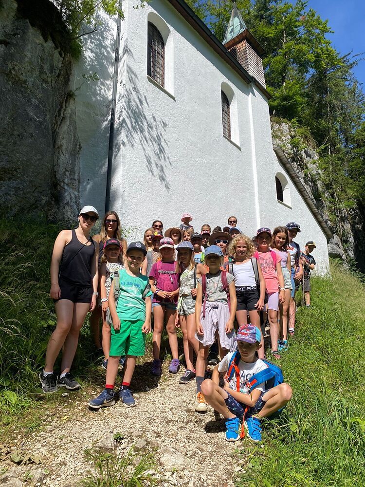 Durchhaltevermögen bewiesen die Kinder auch bei der Wanderung zur Kirche am Falkenstein.