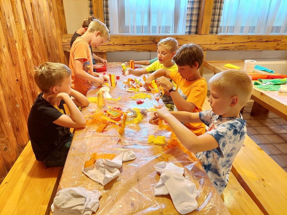 Besonders kreativ durften die Kinder bei der Zeitungsmodenschau und auch beim traditionellen „Bunten Abend“ sein.
