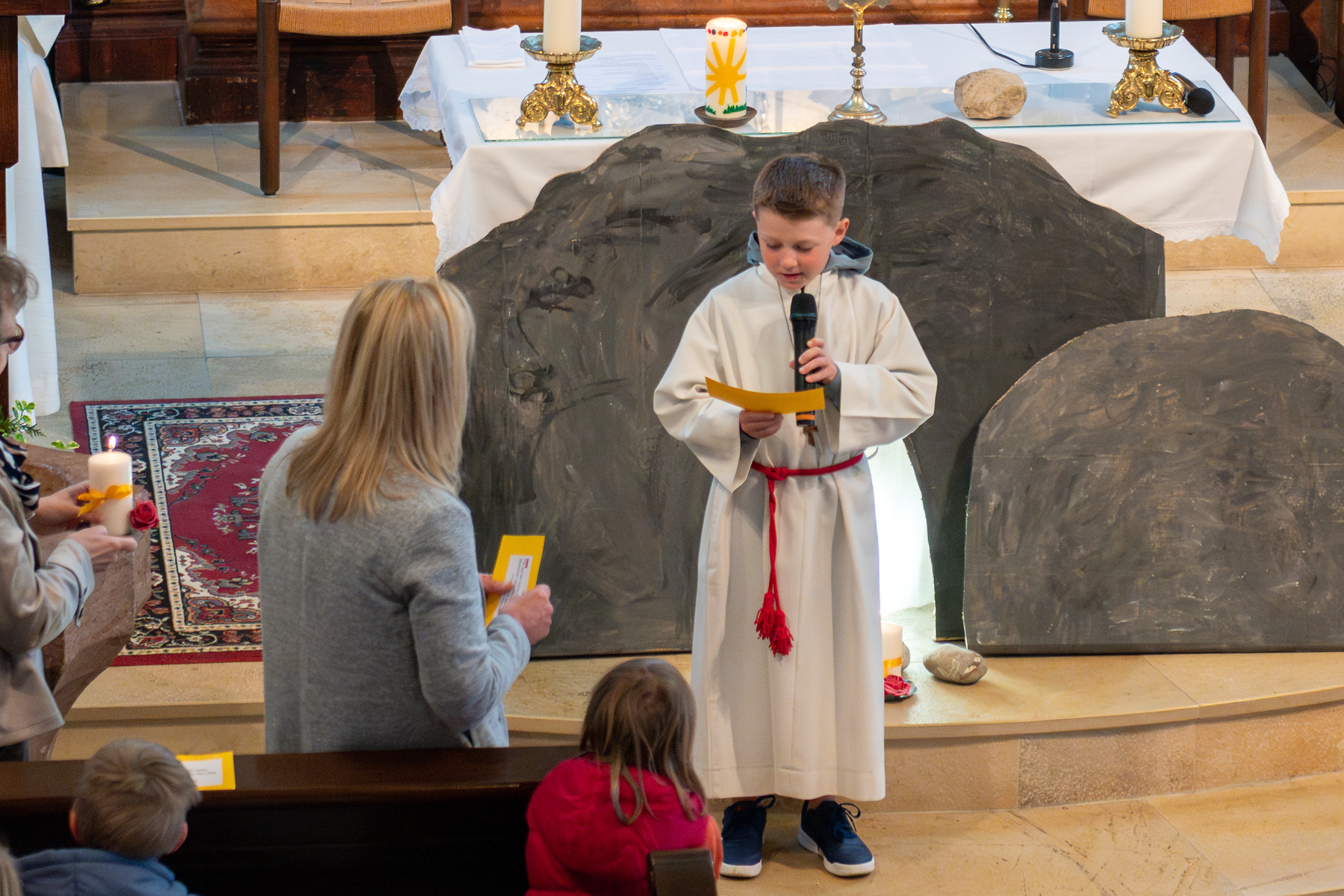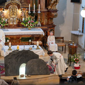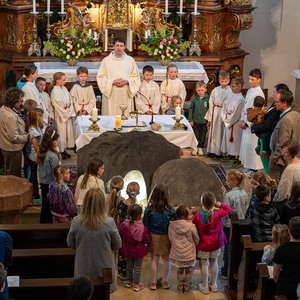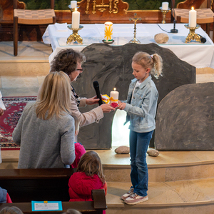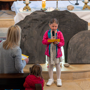 Bei der Kinderauferstehungsfeier staunten wir über das leere Felsengrab in das Jesus gelegt wurde und freuten uns über die Worte des Engels: "JESUS IST AUFERSTANDEN, JESUS LEBT!"