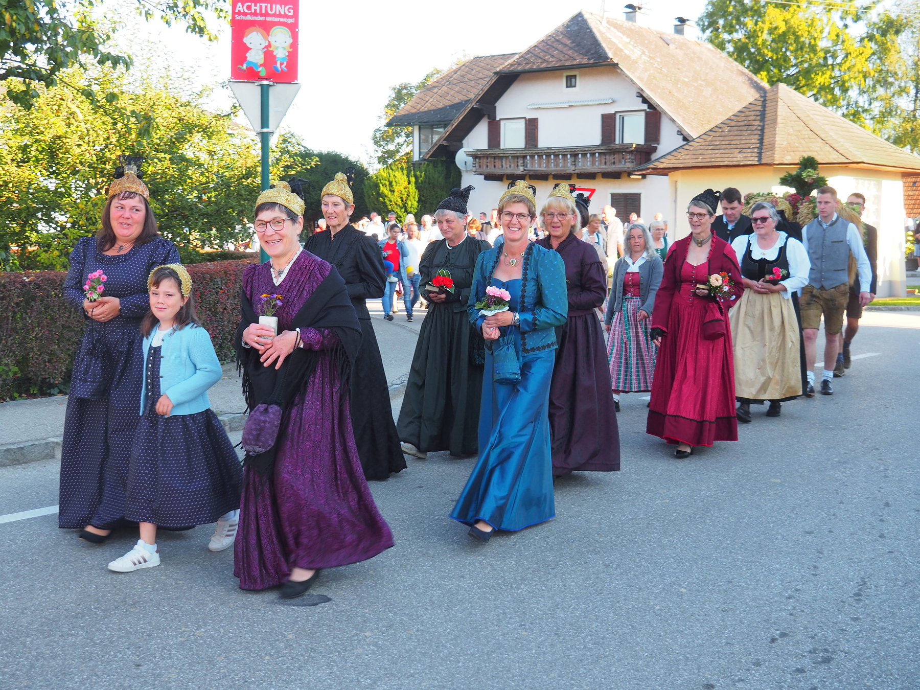 Angeführt von der Muskikapelle führte der feierliche Umzug dann mit den Goldhaubenfrauen, dem Kindergarten, dem Kinderliturgiekreis und zahlreichen Roithamerinnen und Roithamern weiter zur Pfarrkirche zur Festmesse.