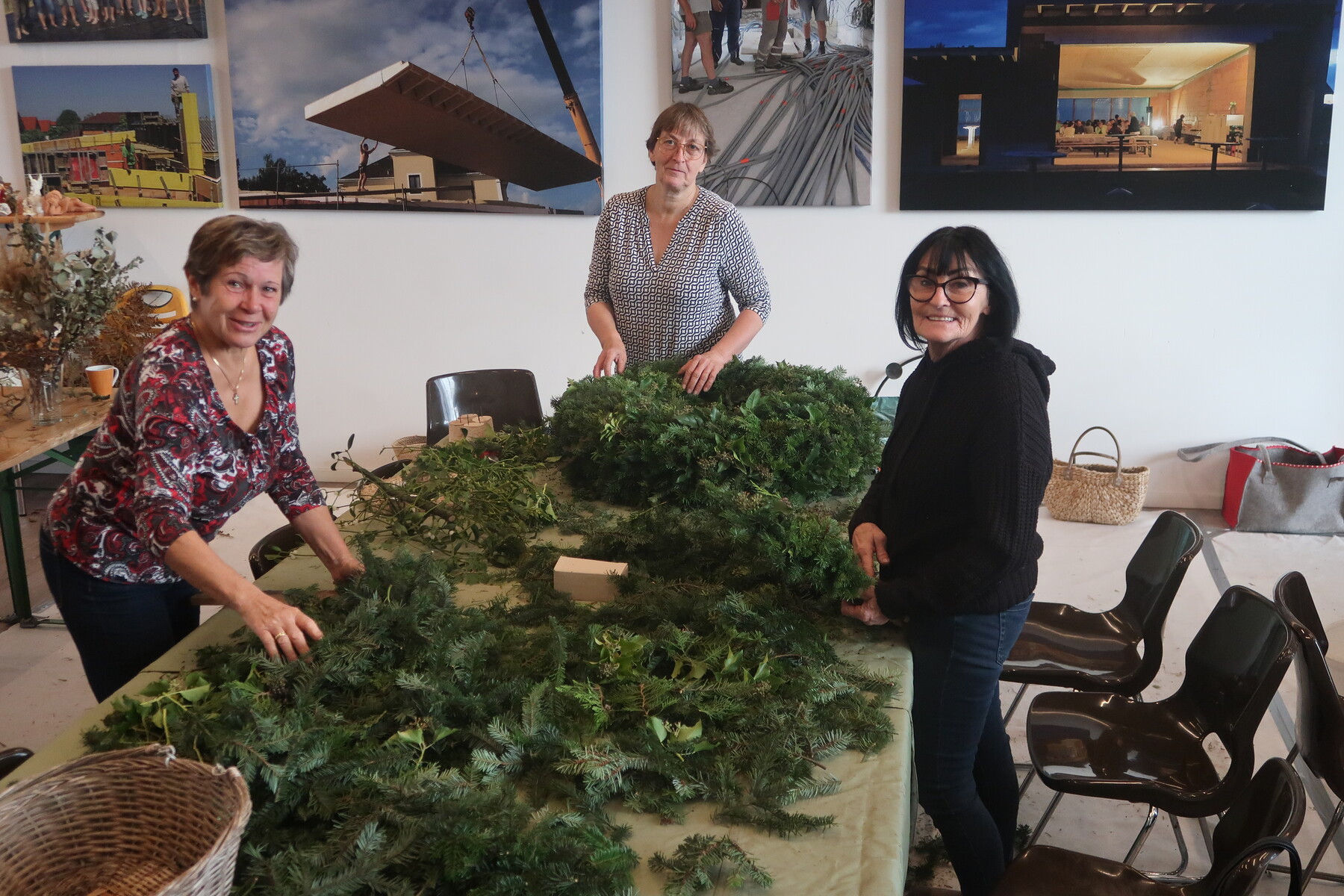 Adventkranzbinden der kfb Roitham am Traunfall