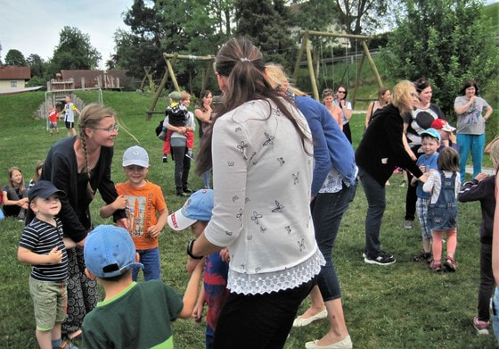 Die Muttertagsfeier konnte trotz dunkler Wolken, aber ohne Regen, am Spielplatz abgehalten werden. Nach dem Muttertagsgedicht und nach dem Muttertagslied wurden alle Mamas zu einem Kreisspiel eingeladen.