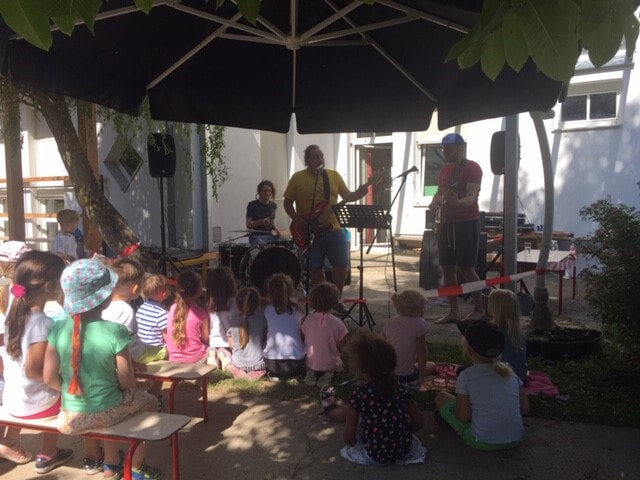 Der Papa von einem Kindergartenkind spielte mit seinen Freunden im Kindergarten viele Kinderlieder. Die Kinder waren begeistert! Der Rhythmus regte die Kinder zum Mitsingen, Tanzen, Hüpfen, Klatschen und Springen ein.